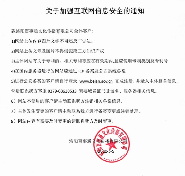 致洛陽百事通文化傳播有限公司全體客戶: